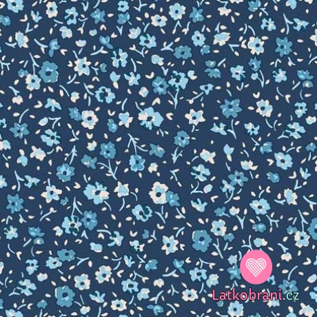Úplet potlač drobné modré kvietky na modrej