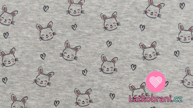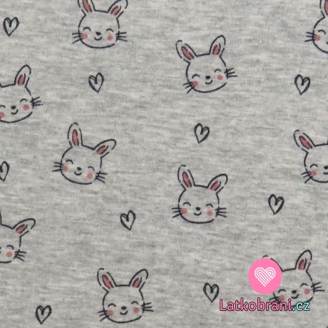 Warmkeeper potlač hlavičky zajačikov medzi srdiečkami na šedom melé