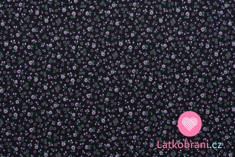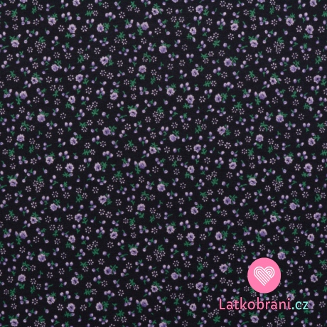 Úplet potlač drobná kvietky na čierne