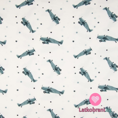 Úplet potlač modrá lietadielka medzi hviezdičkami na biele