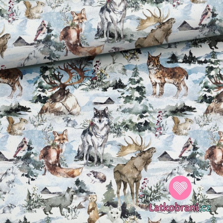 Teplákovina potlač lesné zvieratká na zimné lúke