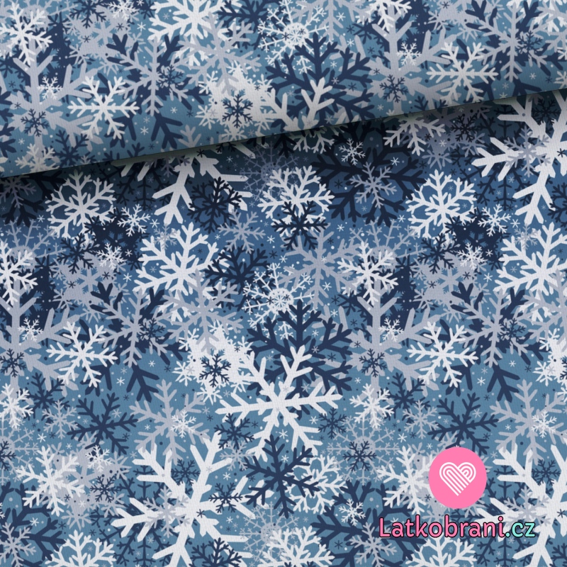 Teplákovina potlač snehové vločky na modrej