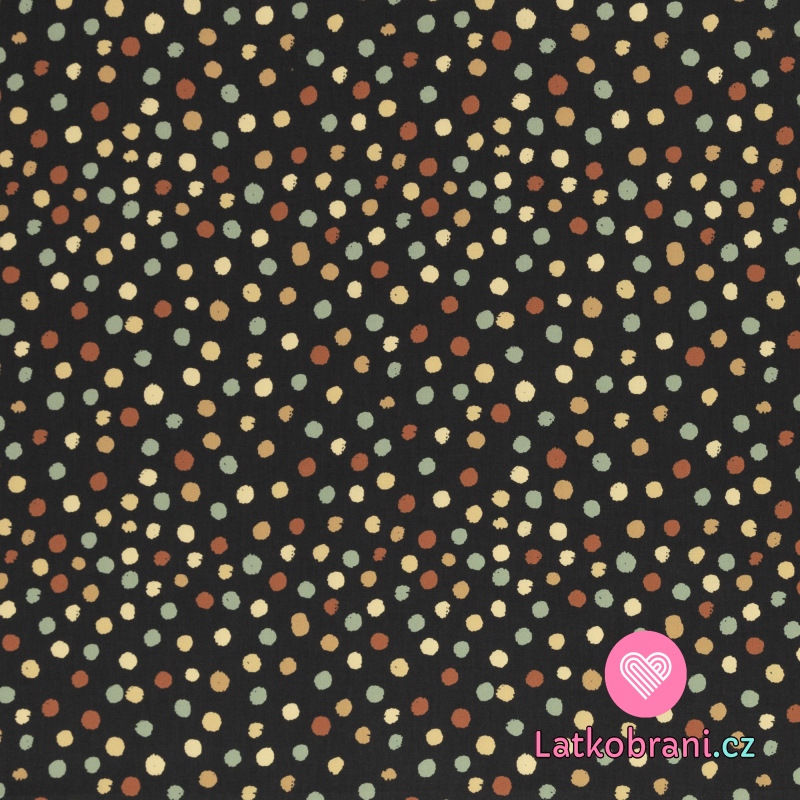 Bavlnené plátno potlač nepravidelné bodkami na čierne