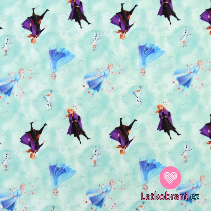 Teplákovina potlač Ľadové kráľovstvo - Elsa a Anna na zelenej mintovou