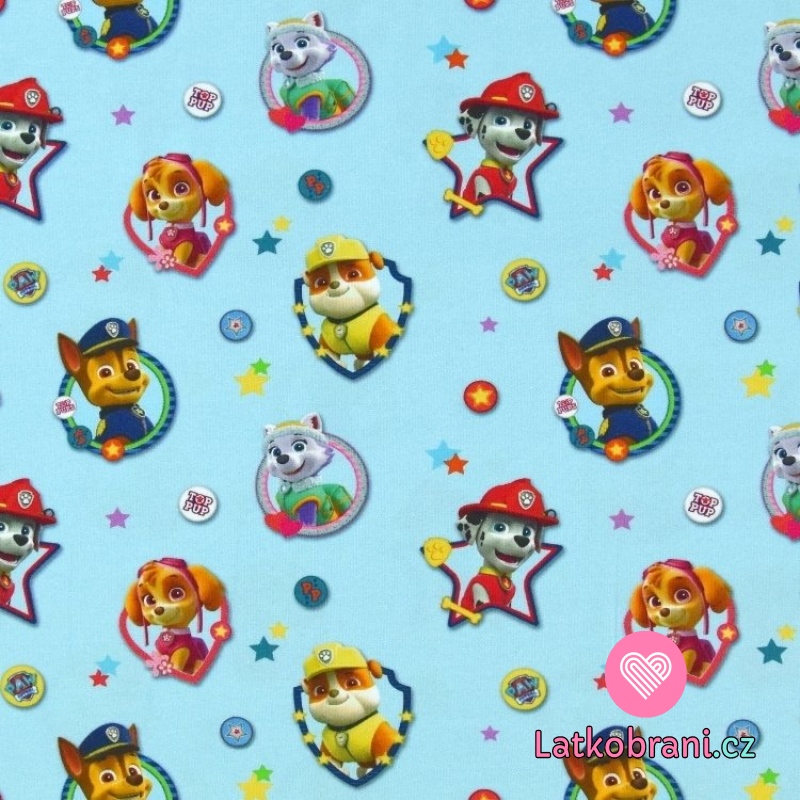 Úplet potlač "vykukujúce" hrdinovia z Tlapkové patroly na svetlo modré