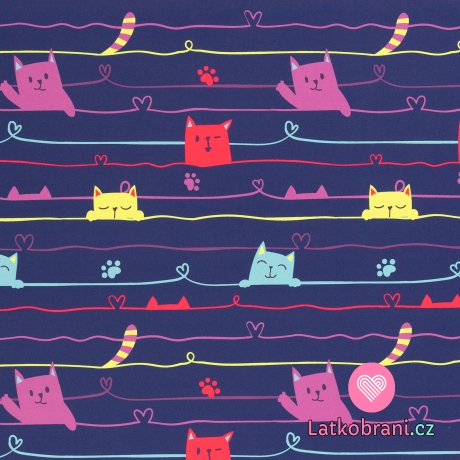 Softshell potlač mačičky medzi prúžky na modro-fialové s fleecom