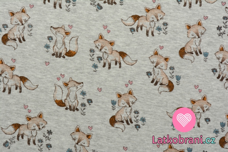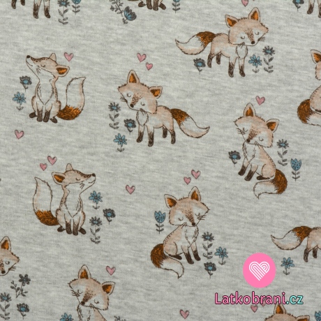 Warmkeeper líštička s kvietkami a srdiečkami na šedom melé