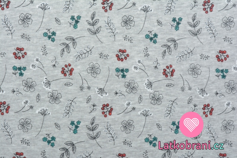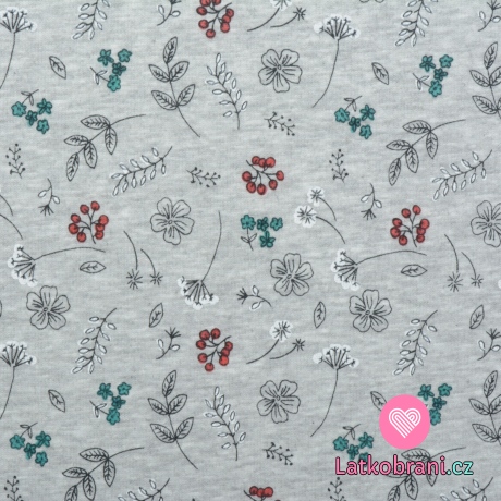 Warmkeeper potlač kvietky, vetvičky a bobuľky na šedom melé