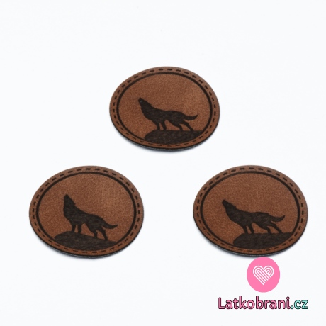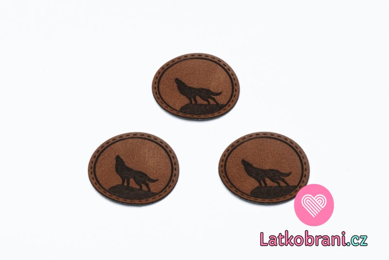 Štítok na oblečenie vlk, okrúhly, koženkový, hladký povrch