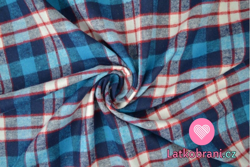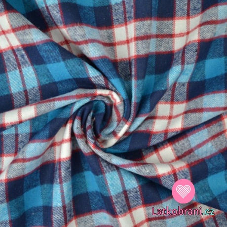 Flanel potlač modrobiela kocka s červeným lemovaním