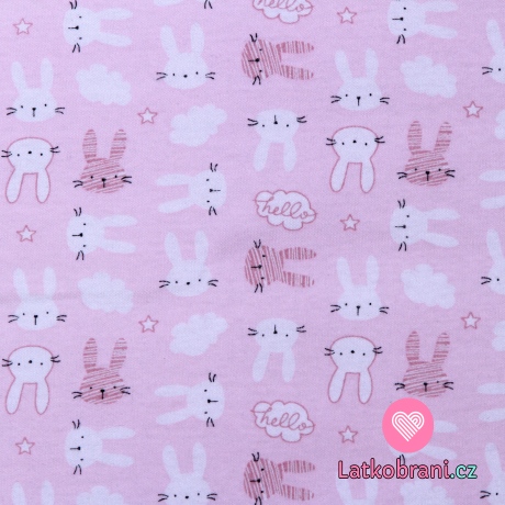 Bavlnený obojlícny úplet zajačikovia na svetlo ružovej