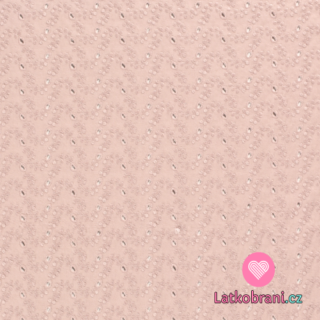 Bavlnená madeira ružová s dierkovanou výšivkou kvietkov
