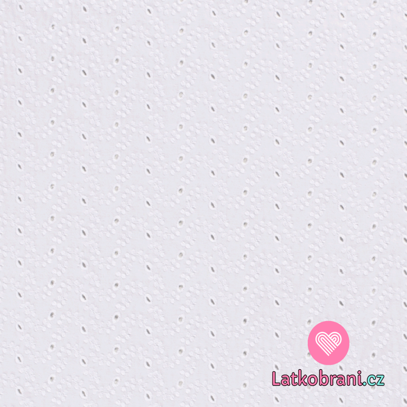 Bavlnená madeira biela s dierkovanou výšivkou kvietkov