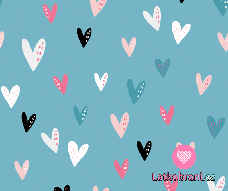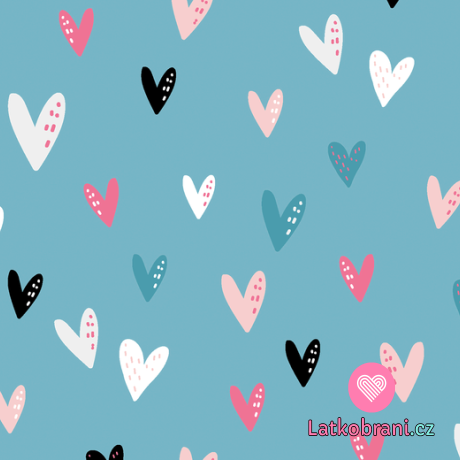 Úplet potlač farebná srdiečka na modrej
