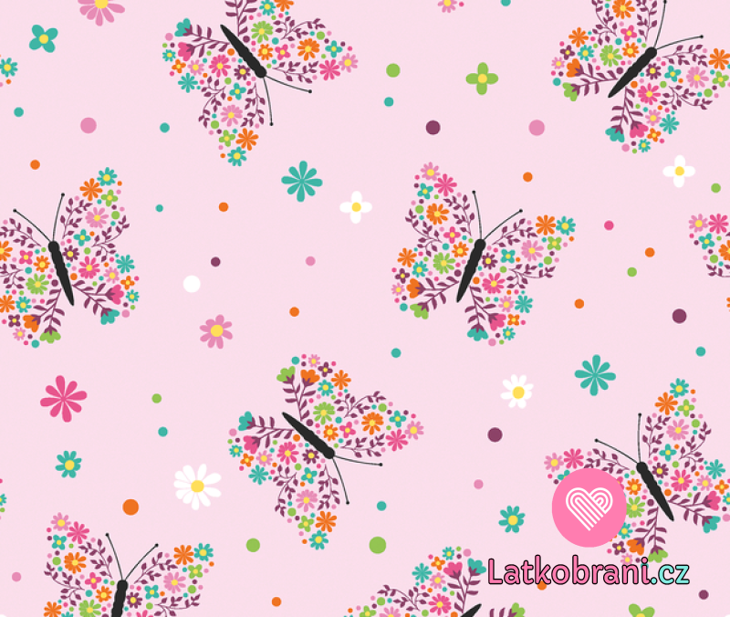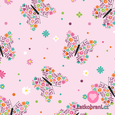 Úplet potlač kvetinové motýliky na ružové