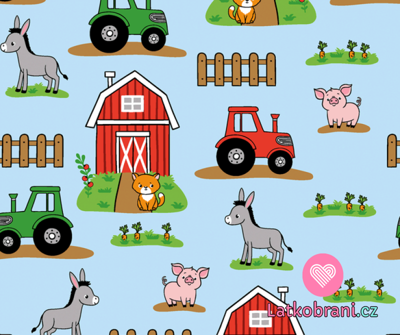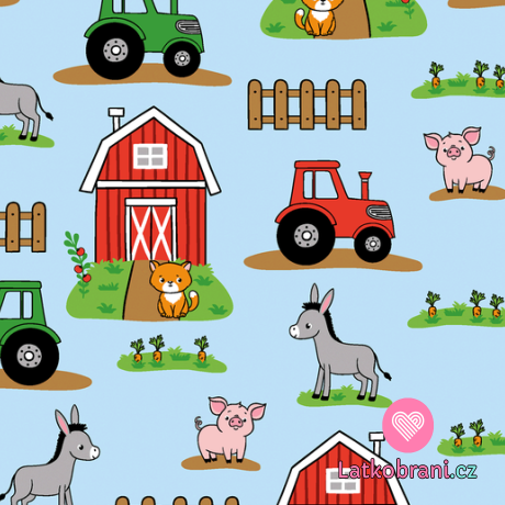 Úplet potlač veselá farma na modrej