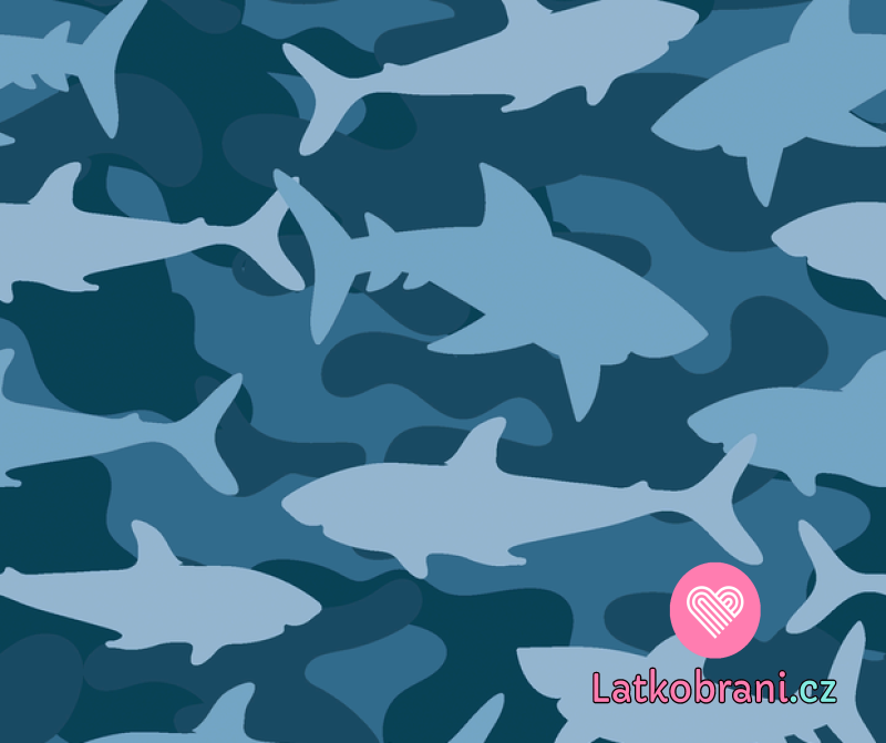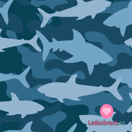 Teplákovina potlač žraloky na modrej