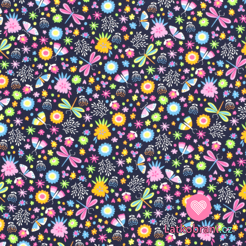 Úplet potlač neónové kvety na tmavo modrej