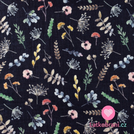 Dvojitá gázovina/mušelín kvety na tmavo modrej