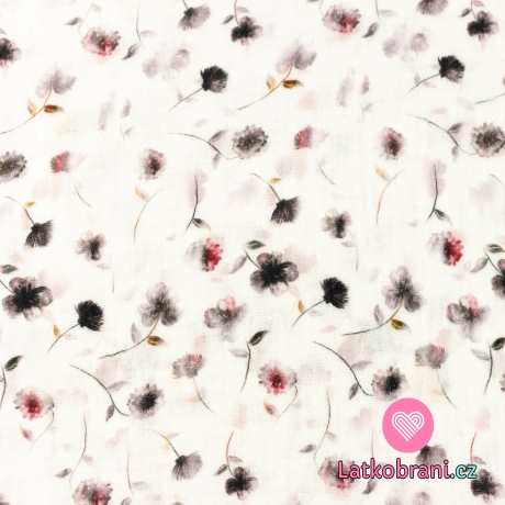Dvojitá gázovina / mušelín tmavé kvety na biele