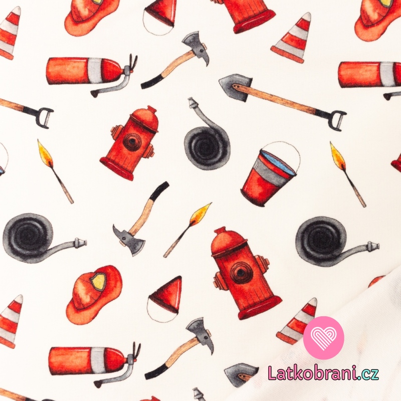 Teplákovina potlač hasičská výzbroj na bielej