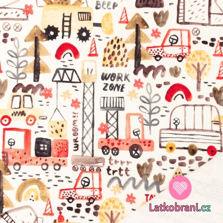 Teplákovina potlač maľované stavebné vozidlá na biele