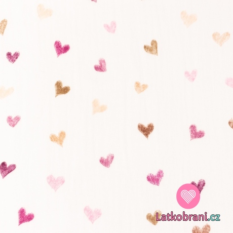 Dvojitá gázovina / mušelín maľované srdiečka do ružova na biele
