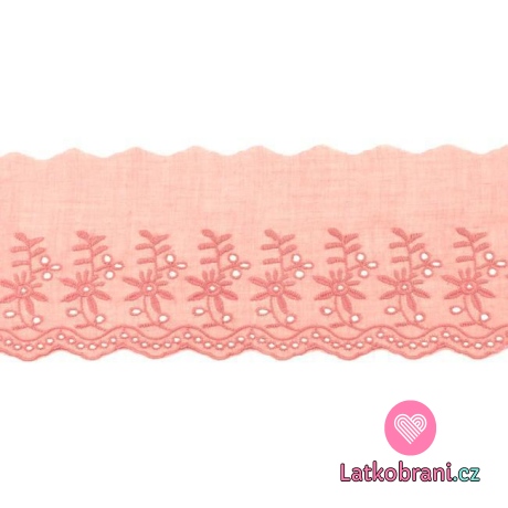 Bavlnená čipka s vyšívanými dvojitými kvetmi 90 mm staroružová