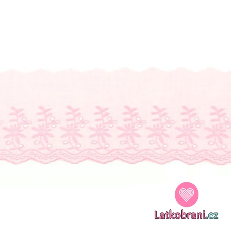 Bavlnená čipka s vyšívanými dvojitými kvetmi 90 mm ružová
