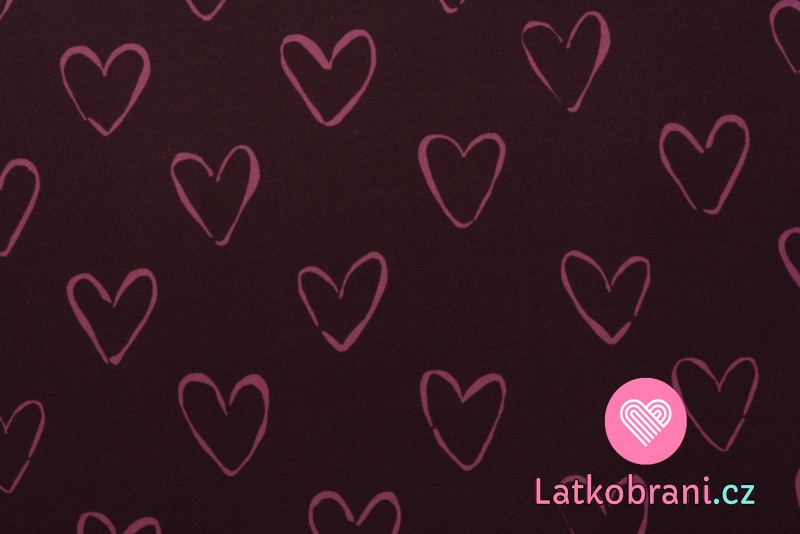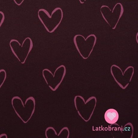 Teplákovina ružová srdiečka na tmavo fialové, ľahko počesaná