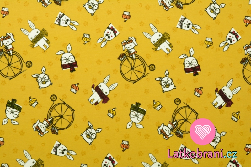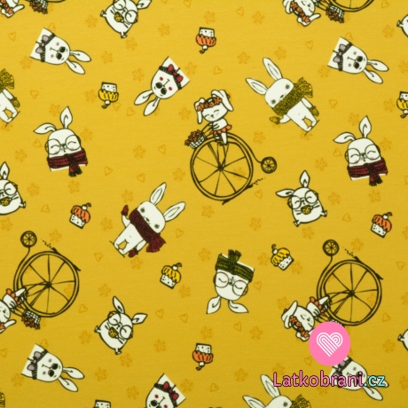 Teplákovina potlač neposední zajačikovia na horčicovom podklade