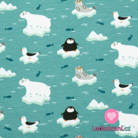 Teplákovina potlač polárne zvieratá na svetlo petrolejovej
