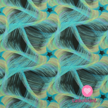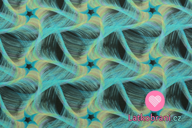 Úplet potlač tyrkysovej špirály na čierne