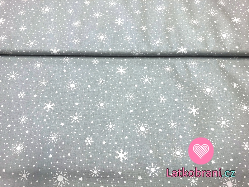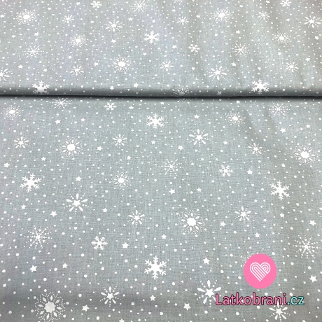 Bavlnené plátno snehovej vločky na šedej