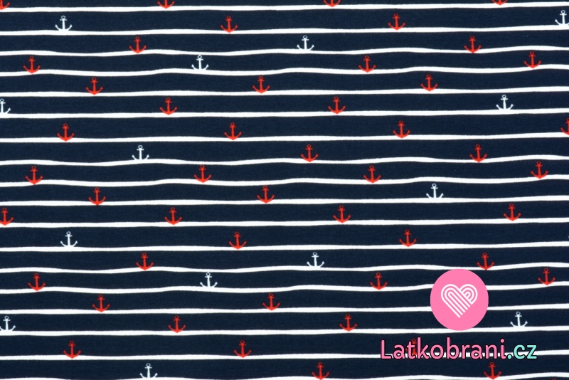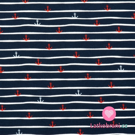 Úplet potlač kotvičky s prúžkami na námorníckej modrej, BIO