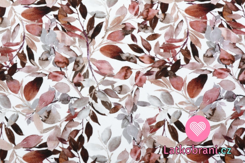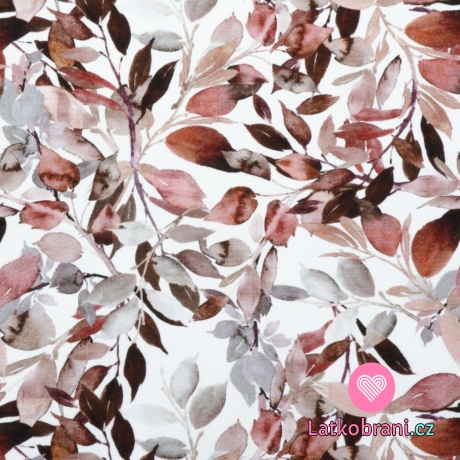 Úplet potlač jesenné listy na biele, BIO