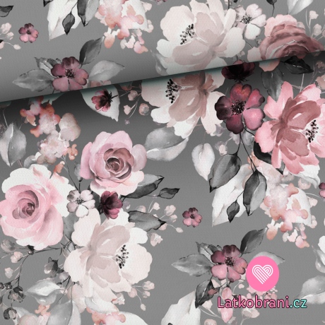 Teplákovina potlač rozkvitnutej ruže na šedej