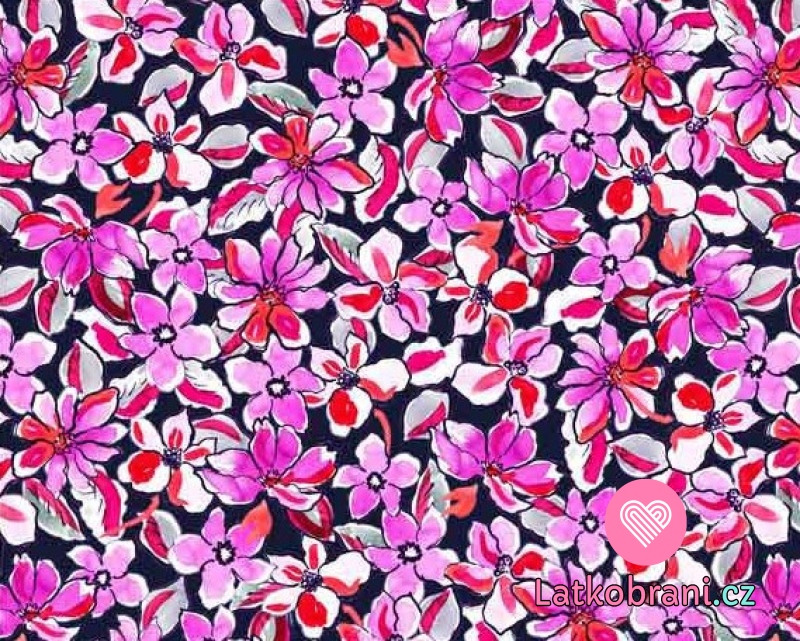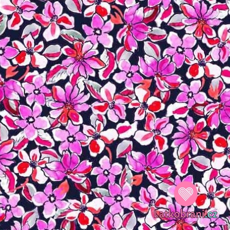 Úplet potlač ružovej kvietky na čiernom podklade