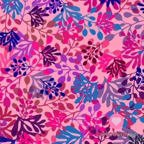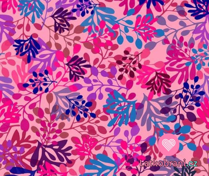 Úplet potlač farebné listy na ružovom podklade