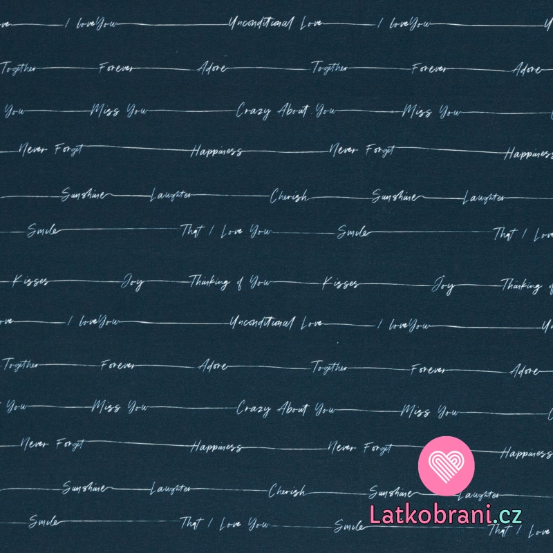 Úplet potlač zamilované písanie na tmavo modrej