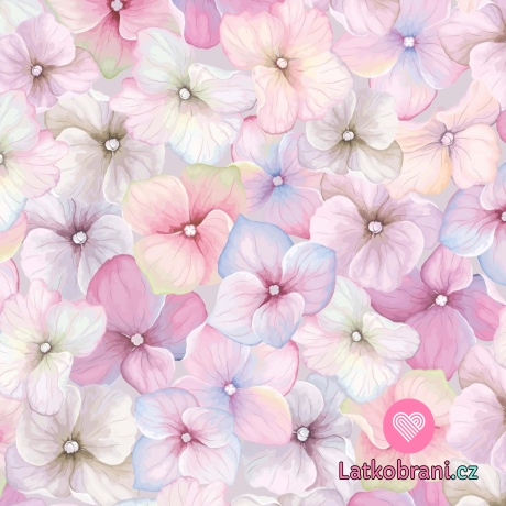 Úplet potlač hortenzie na svetlé orgovánové