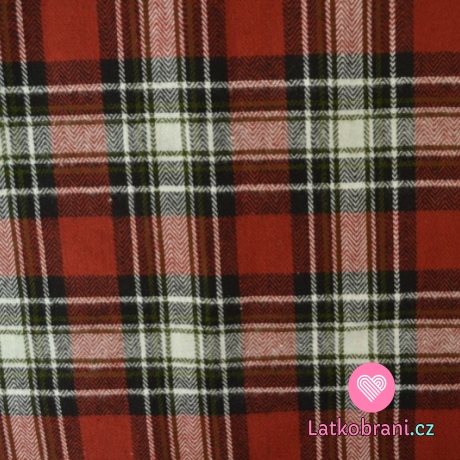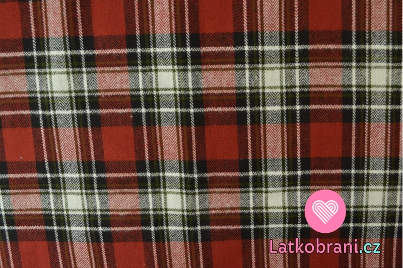 Bavlnený flanel červenobiela kocka so zeleným lemovaním
