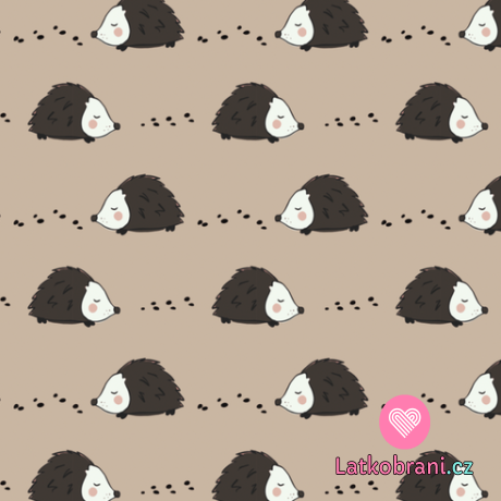 Rebrovaný úplet potlač ježko na béžovej, BIO