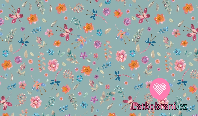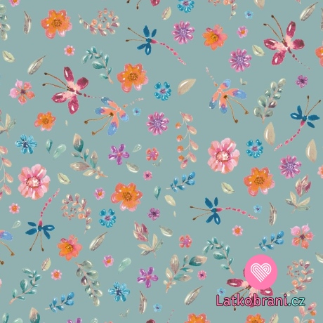 Úplet potlač maľované kvety na modrej jeans