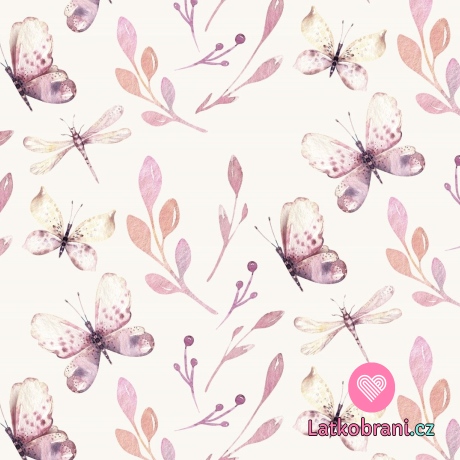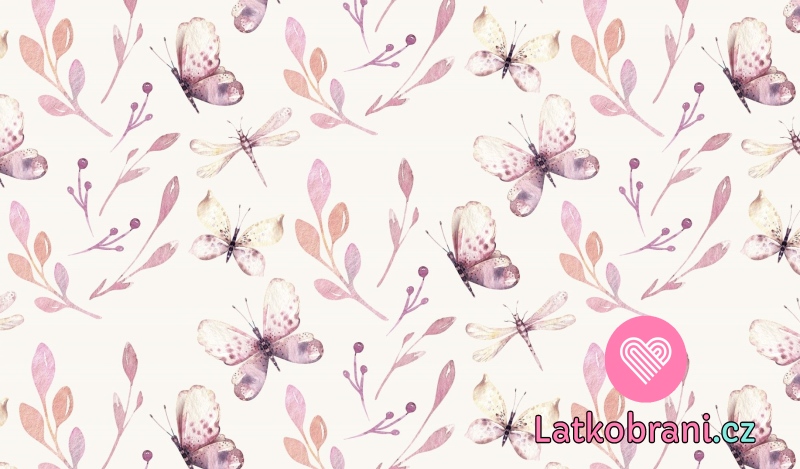 Teplákovina potlač motýle medzi vetvičkami na ecru