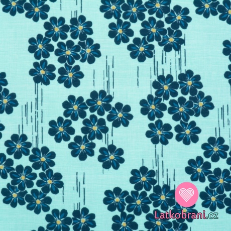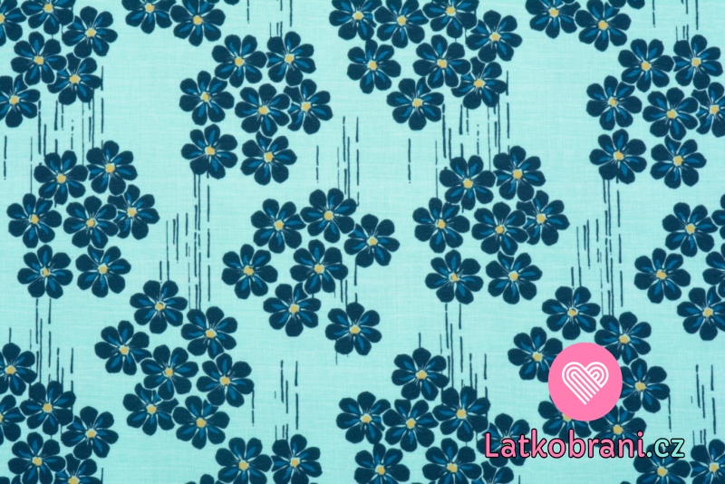 Úplet potlač tmavo modré kvety na mintovom podklade