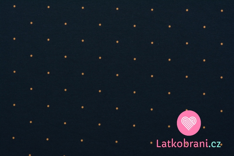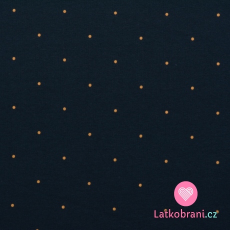 Teplákovina potlač škoricová bodka na tmavo modrej