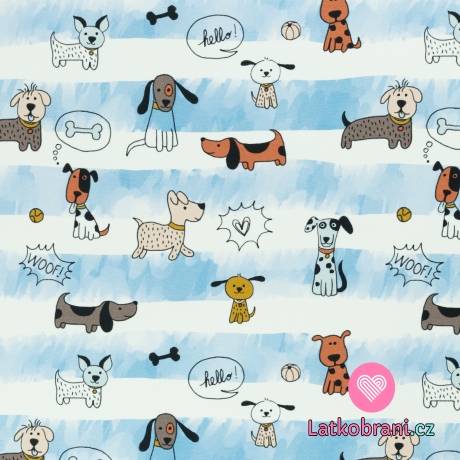 Úplet potlač psíkovia na modro-bielych prúžkoch