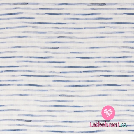 Rebrovaný úplet vlnité džínsovo modré prúžky na biele