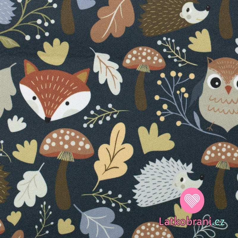 Softshell potlač zvieratka v lese na tmavo modrej s fleecom